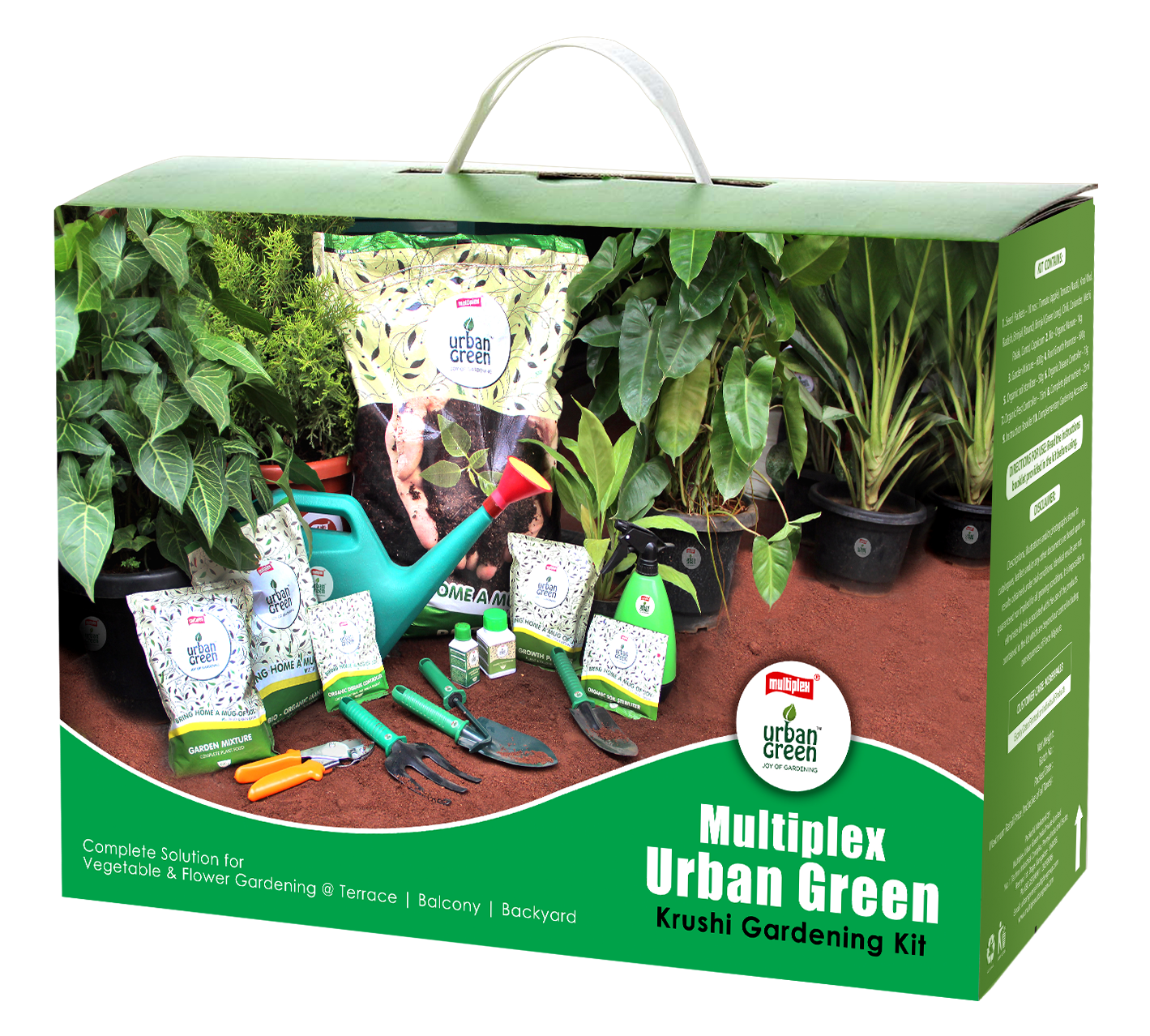 The Multiplex Urban Green Krushi Gardening Kit is a complete starter solution designed for urban homes, balconies, terraces, and kitchen gardens. This kit provides all the essential tools and inputs needed to begin gardening easily, even with limited space and time.